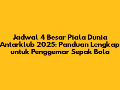 Jadwal 4 besar Piala Dunia Antarklub 2025 akan menjadi puncak dari persaingan sengit di turnamen bergengsi ini. Kita akan menyaksikan tim-tim terbaik dunia beradu kemampuan untuk memperebutkan gelar juara. Format baru yang lebih inklusif akan memberikan warna baru dan membuat persaingan semakin menarik. Jadi, persiapkan diri kalian untuk menyaksikan pertandingan-pertandingan yang seru dan menegangkan!