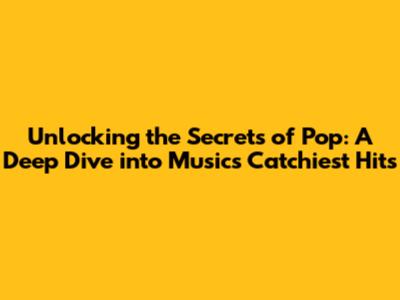 Unlocking The Secrets Of Pop: A Deep Dive Into Music's Catchiest Hits